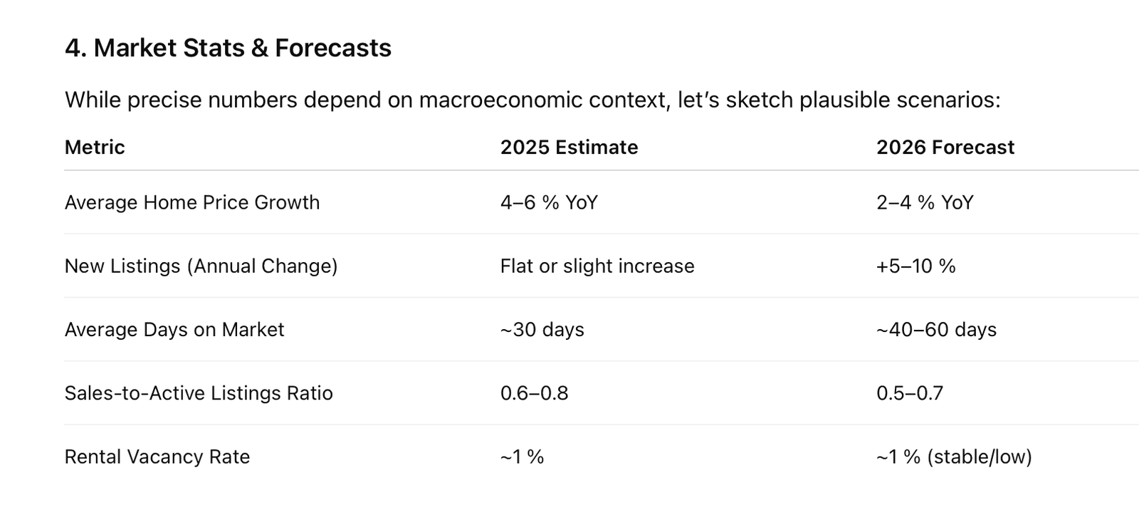 - Longer time-on-market becomes more likely—sellers might allow 40–60 days versus 30 or less common in past red-hot years.