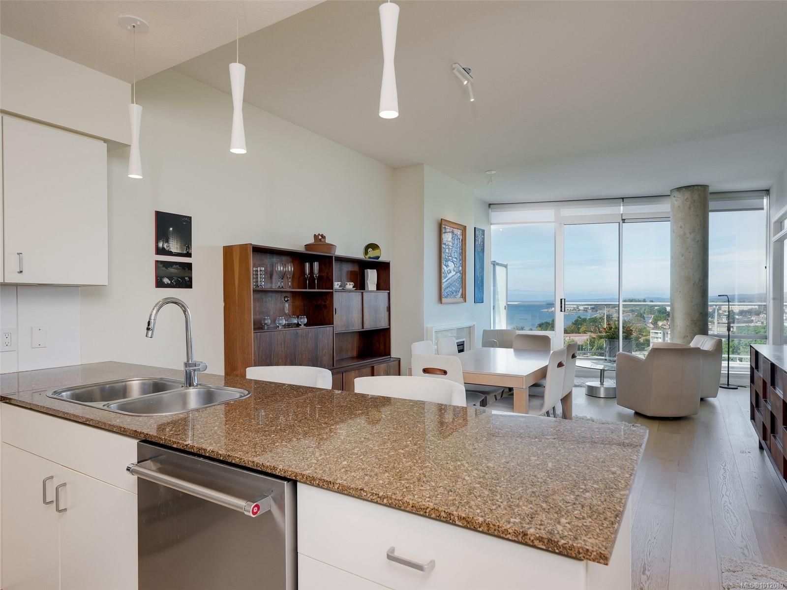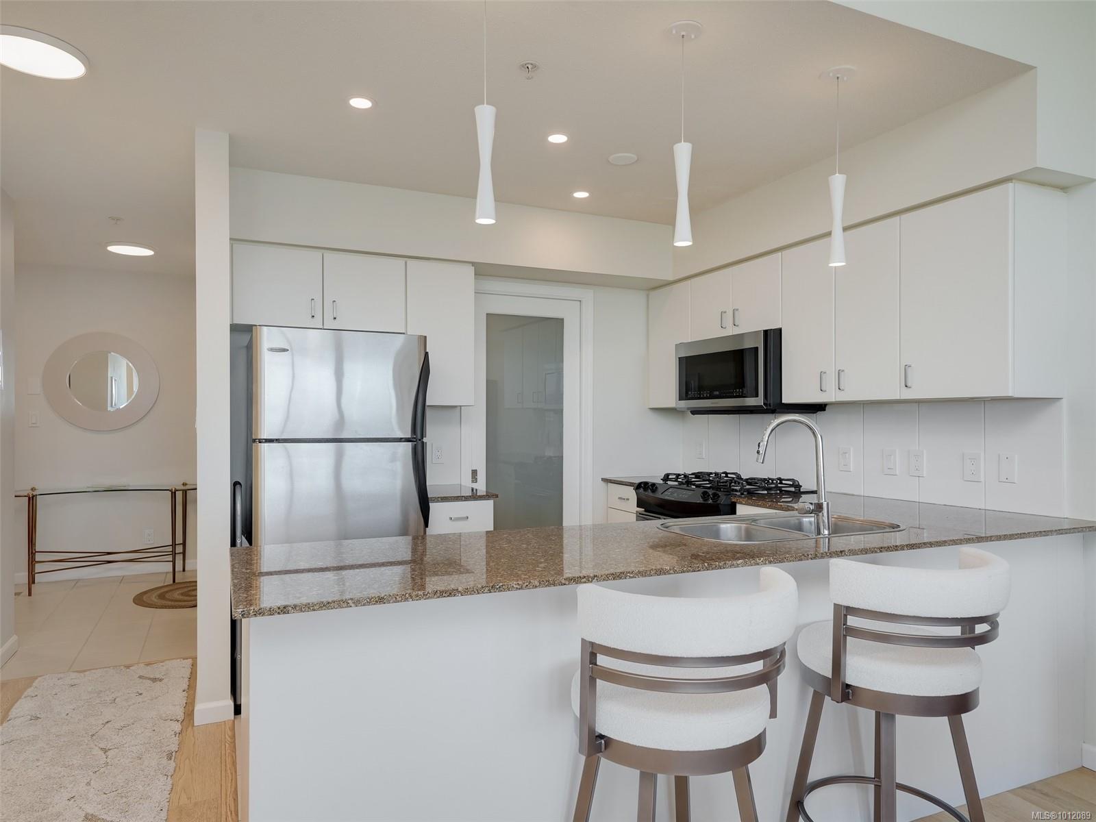 Locations like this don't come up often! Western Corner Penthouse unit in the Parc Residences is completely private, stunningly bright, quietly perched, and ever so conveniently located. With features often sought after, but rarely offered. 2 parking stalls (one with dedicated EV charger), dedicated heat pump, natural gas outlet on the massive wrap around deck. Views that have to be seen in person to truly appreciate: sunsets, ocean, panoramic city and mountain images you'll never tire of. Watch the planes take off and the cruise ships come in. Stay home for the fireworks! Host and entertain in near complete privacy. The Parc is well managed and proactive, plus located next to amenities galore. Groceries, restaurants, cafes, and pubs are all downstairs. Bike lanes and public dock means you can take the water path, bike path, or a quick 12 min walk to all downtown has to offer. Floor to (high) ceiling windows and a thoughtful layout with multiple living/work spaces. Come have a look!