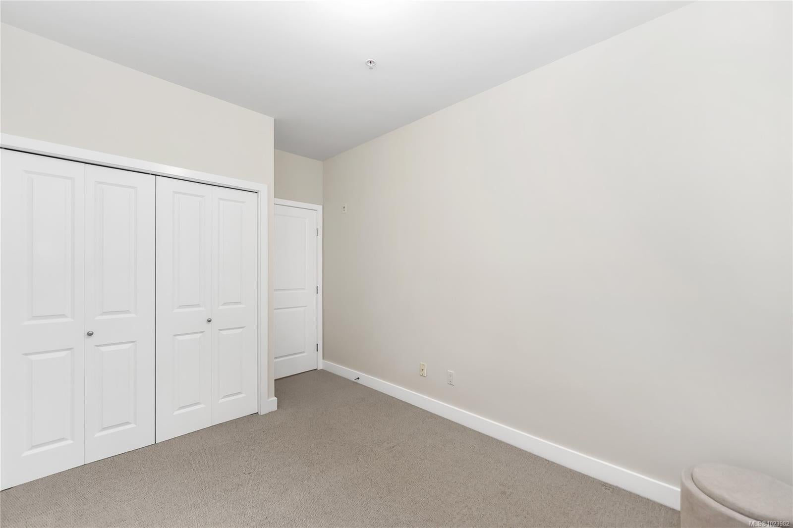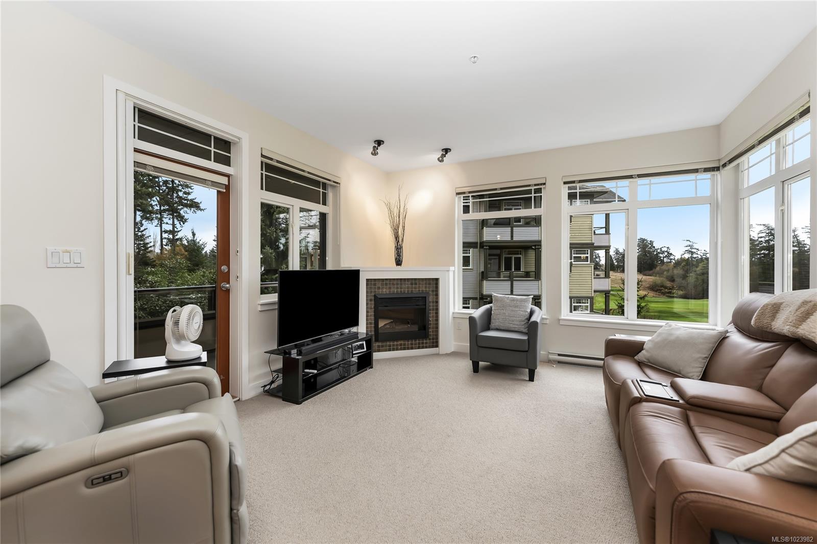 Meticulously updated, this 2 bed, 2 bath plus den on the quiet side of the building backs on to the Gorge Vale golf course. Light from the southeast flows through a bank of windows into the open concept living/dining/kitchen areas. High ceilings increase the sense of space. The primary bedroom includes a large walk-through closet plus private 4pc ensuite with soaker tub and walk-in shower. Updates in 2024/2025 include new paint, solid surface countertops, sinks and faucets throughout as well as all 6 new appliances plus a new water heater. Easy access to town via car, bike, bus, or a short walk to the Gorge Waterway. Pets welcome, one dog or one cat, with no size restrictions.