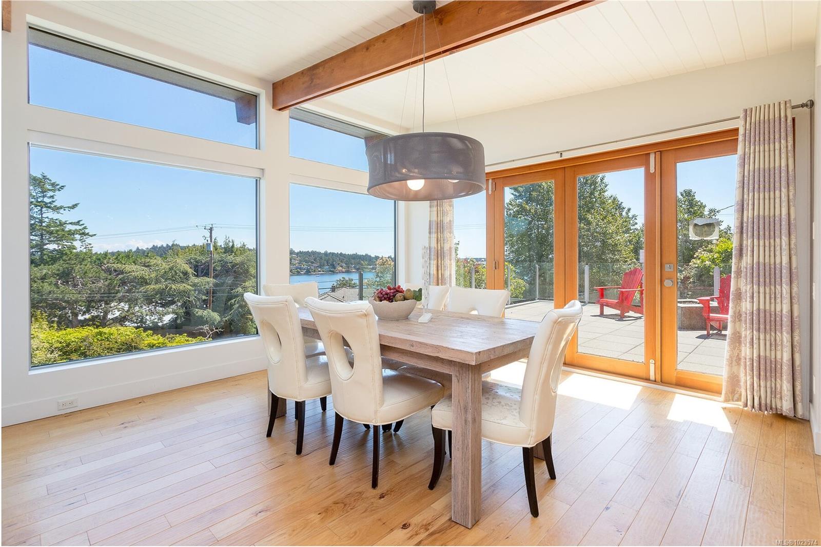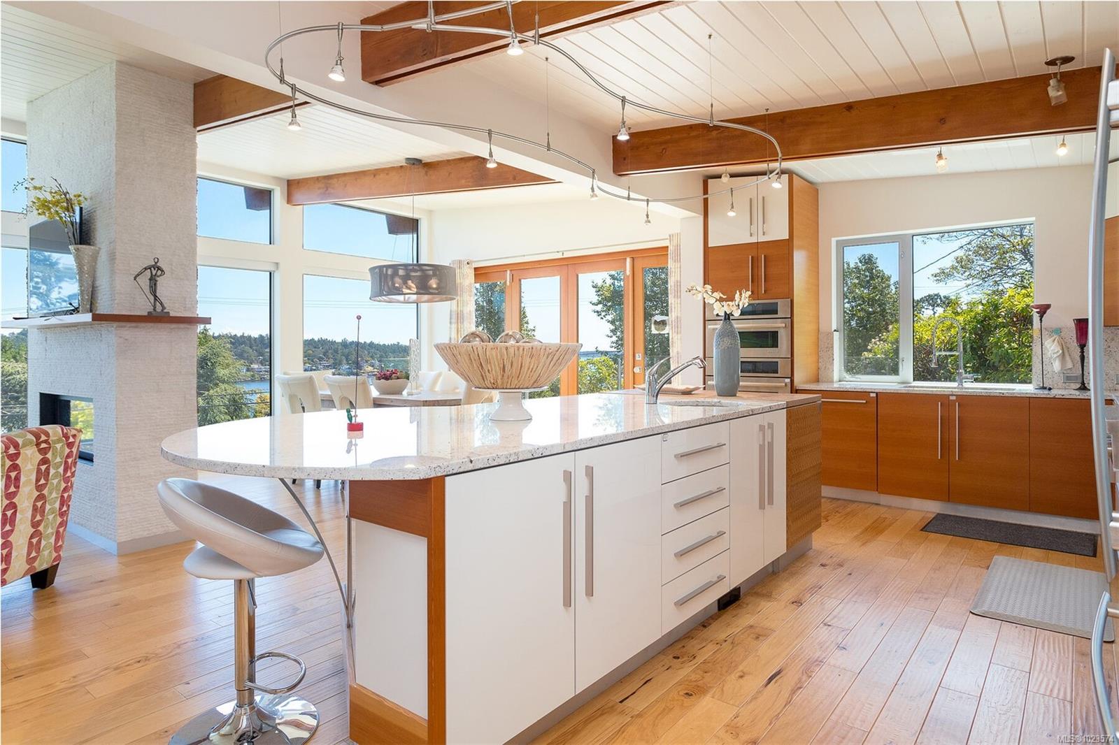 Enjoy spectacular, picturesque ocean views from both the main and upper level! This exceptional modern residence boasts 3500+ sq.ft. of meticulously crafted design/complete renovation by the multi-award-winning CITTA GROUP. The open concept plan offers expansive windows with incredible views, living & dining rooms w/2-sided fireplace, large bright gourmet kitchen w/ high-end SS appliances, granite countertops/centre island. A dedicated office/bedroom + 2nd bedroom on the main floor enhance functionality. The deluxe upper level primary retreat (added in 2013) offers panoramic ocean views, lavish ensuite & spacious WIC. The lower level has separate entrance + guest room w/ ensuite, gas fireplace, media center. Top of the line finishings, engineered Hickory floors throughout the main and upper levels, in-floor radiant heat, gas fire box on huge entertainment deck, and wine rack and bar in family room. Steps from Cadboro Bay beach, Village shops, restaurants & amenities, Gyro Park & UVic.