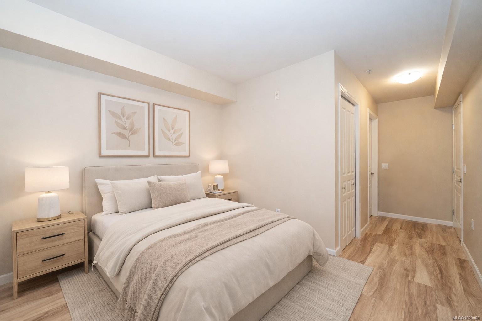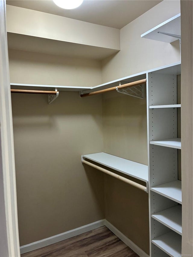 Situated in the heart of Langford, this quiet open concept, spacious 2 bedroom & 2 full bath third floor condo has a great layout. Fabulous kitchen with lots of cupboards, counter space & breakfast bar seating. Master bedroom has a walk-in closet & a full en suite. Large bedrooms both have exterior windows. Convenient in-suite laundry, large coat closet & linen closet. Secure underground parking, storage locker, bicycle room, exercise room, common room, Japanese courtyard garden & a roof top patio. A short stroll to shopping, restaurants, parks, championship golfing, the new university & all amenities. Minutes to the highway. Pets & rentals allowed. Bike to town on the Galloping Goose Trail across the street, super convenient location. And now newly painted, come have a look!