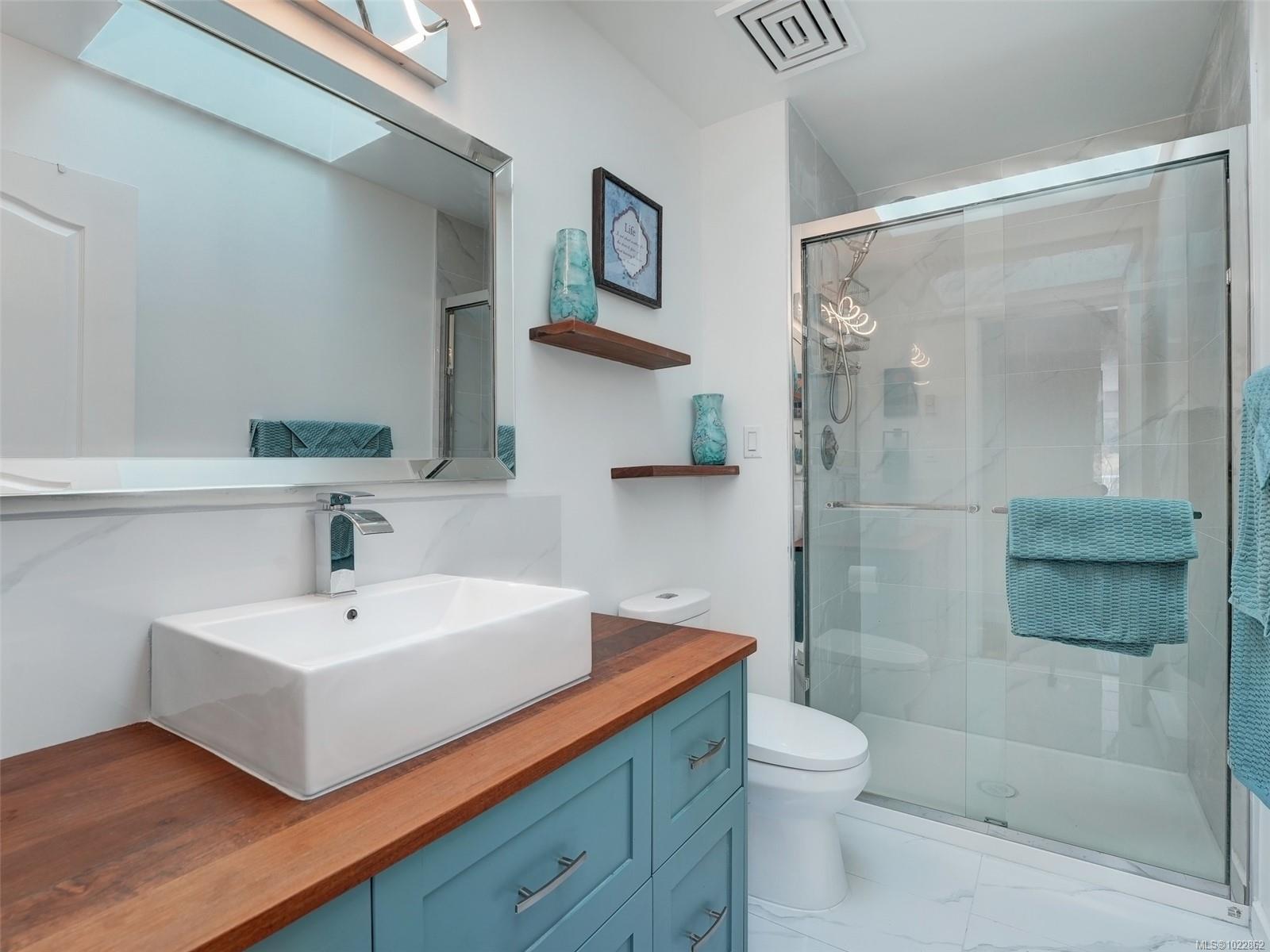 One-level living in Arbutus Ridge! This beautifully updated four-bedroom, three-bathroom home is located in the highly desirable 55+ gated community of Arbutus Ridge. Offering 3,397 sqft, this home combines the convenience of main-level living with a fully finished lower level, ideal for guests, hobbies, or extra space. Backing onto the 12th fairway, the south-facing backyard provides privacy and tranquil views. The main level features hardwood and tile floors, skylights, 2 gas fireplaces, a kitchen with stainless steel appliances & granite counters, along with a bright dining area and 2 living spaces. The primary suite includes a walk-in closet, luxurious ensuite, and in-suite laundry, with a second bedroom & full bath also on the main level. The lower level is also accessible by an exterior entrance & offers a rec room, wet bar, 2 bedrooms, an additional bathroom, and theatre room. Just steps to the clubhouse, pool, tennis, and ocean access this is resort-style living at its finest.