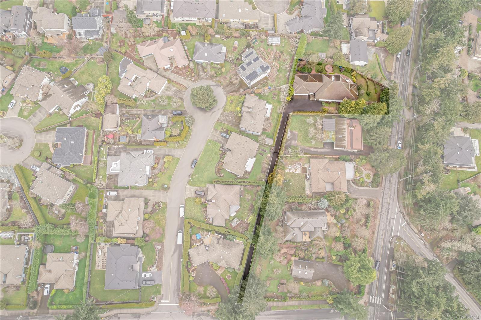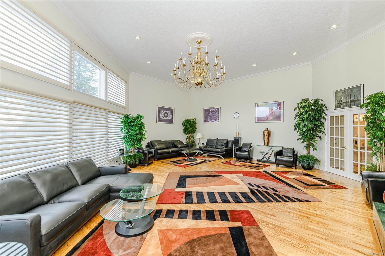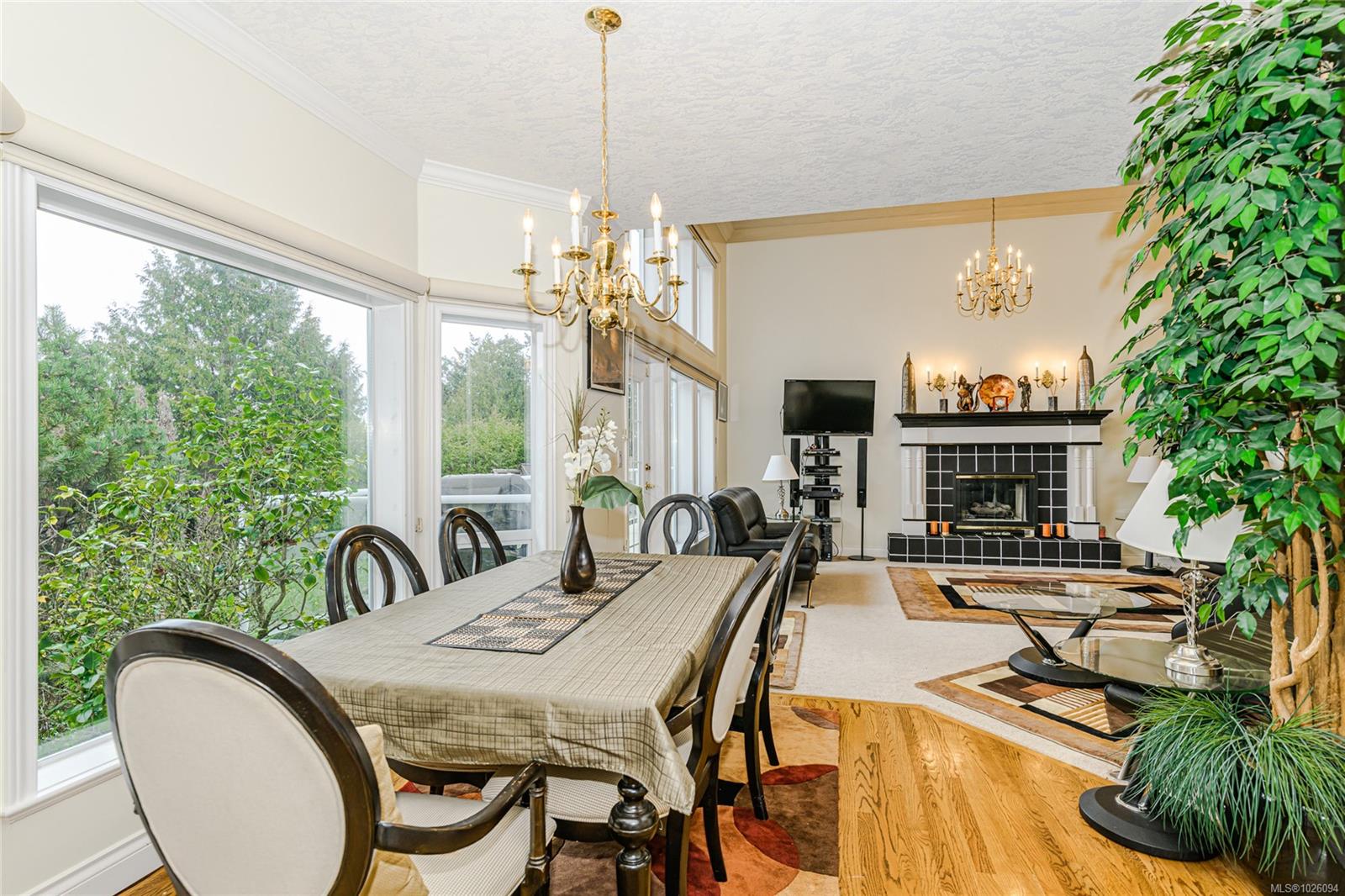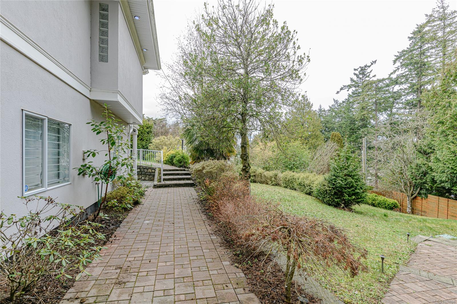 This special custom residence offers approximately 6,400 sq. ft. of living space, including a spacious 3–4 bedroom suite on the lower level, and is set on a very private, secluded half-acre in the heart of Gordon Head. Just moments from Arbutus Cove, the home enjoys distant ocean views from principal living areas overlooking beautifully landscaped gardens with a koi pond and custom gazebo—perfect for entertaining and summer BBQs. From the moment you enter, the scale and drama of the floor plan are evident. Highlights include 14-ft ceilings, floor-to-ceiling windows, skylights, hardwood floors, French doors, and an impressive grand living room and great room designed for both family living and entertaining. A private, secure setting close to UVic, top schools, parks, and beaches.