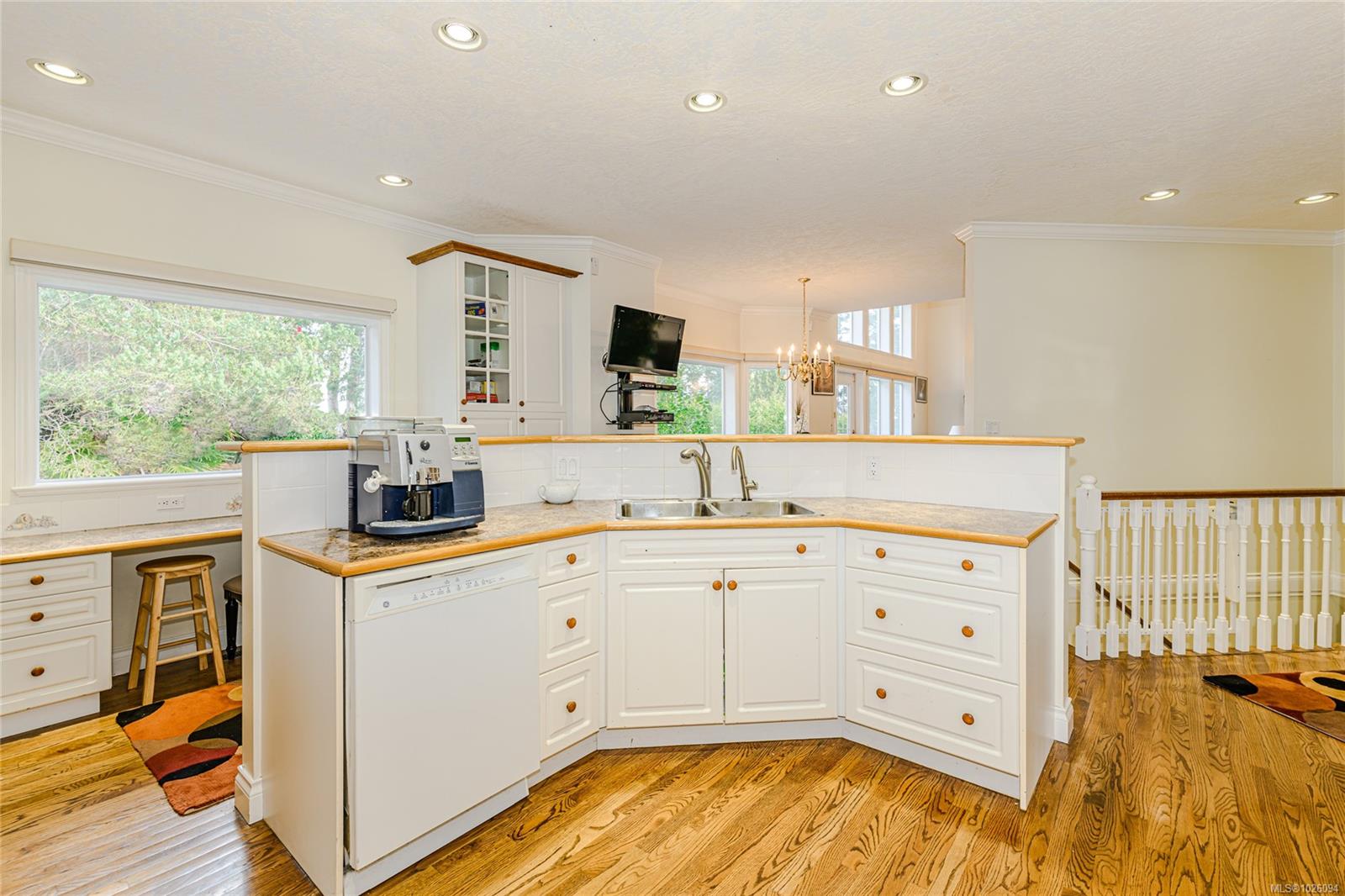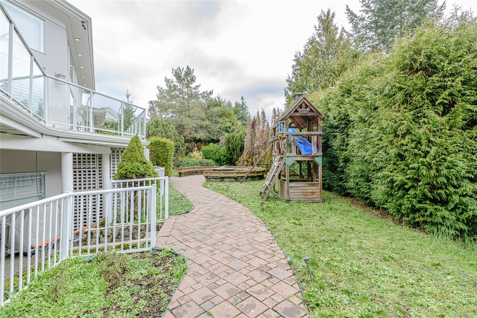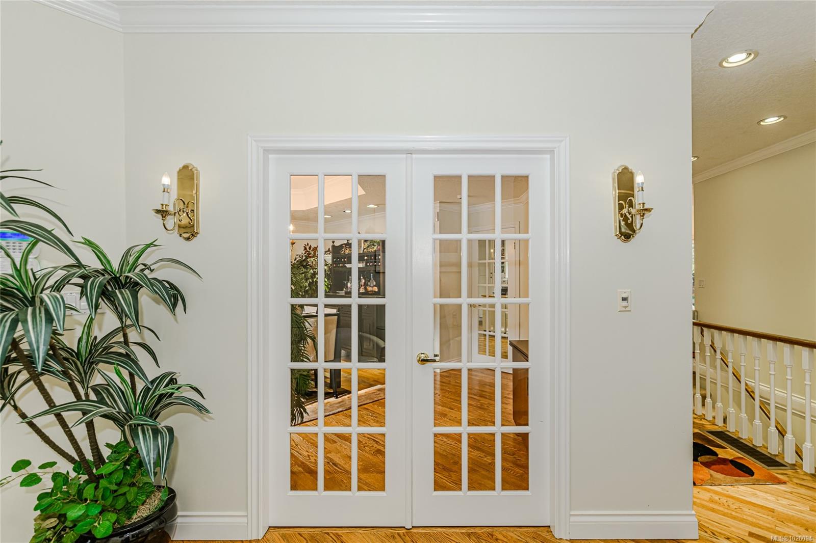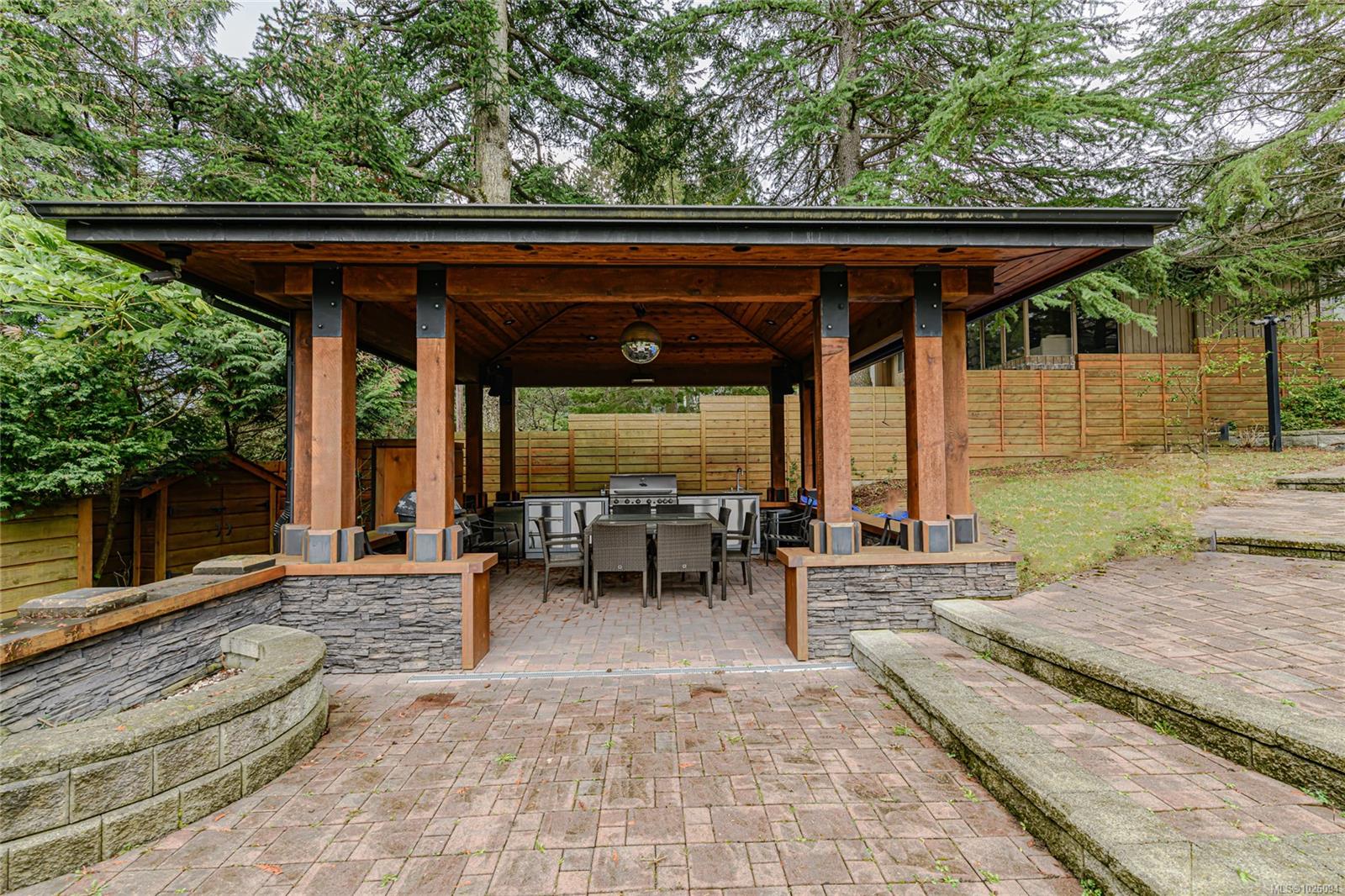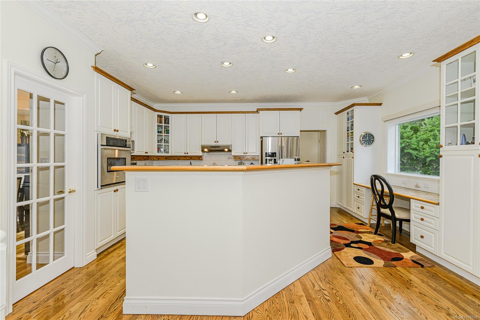 This special custom residence offers approximately 6,400 sq. ft. of living space, including a spacious 3–4 bedroom suite on the lower level, and is set on a very private, secluded half-acre in the heart of Gordon Head. Just moments from Arbutus Cove, the home enjoys distant ocean views from principal living areas overlooking beautifully landscaped gardens with a koi pond and custom gazebo—perfect for entertaining and summer BBQs. From the moment you enter, the scale and drama of the floor plan are evident. Highlights include 14-ft ceilings, floor-to-ceiling windows, skylights, hardwood floors, French doors, and an impressive grand living room and great room designed for both family living and entertaining. A private, secure setting close to UVic, top schools, parks, and beaches.