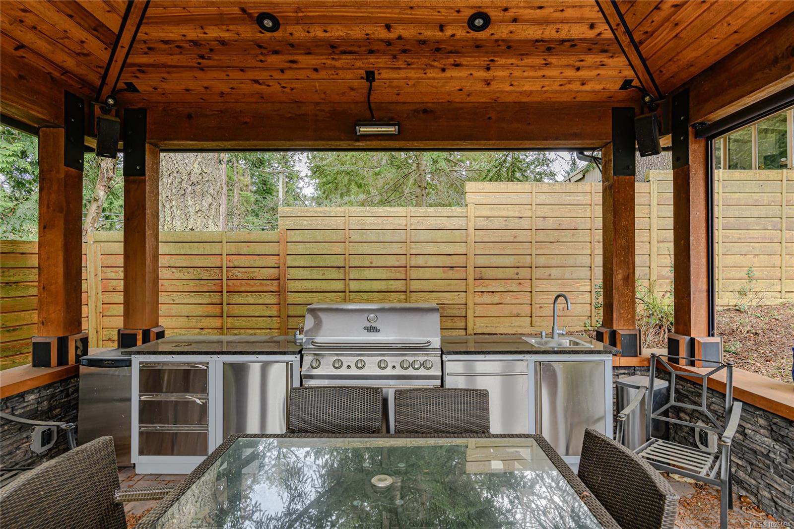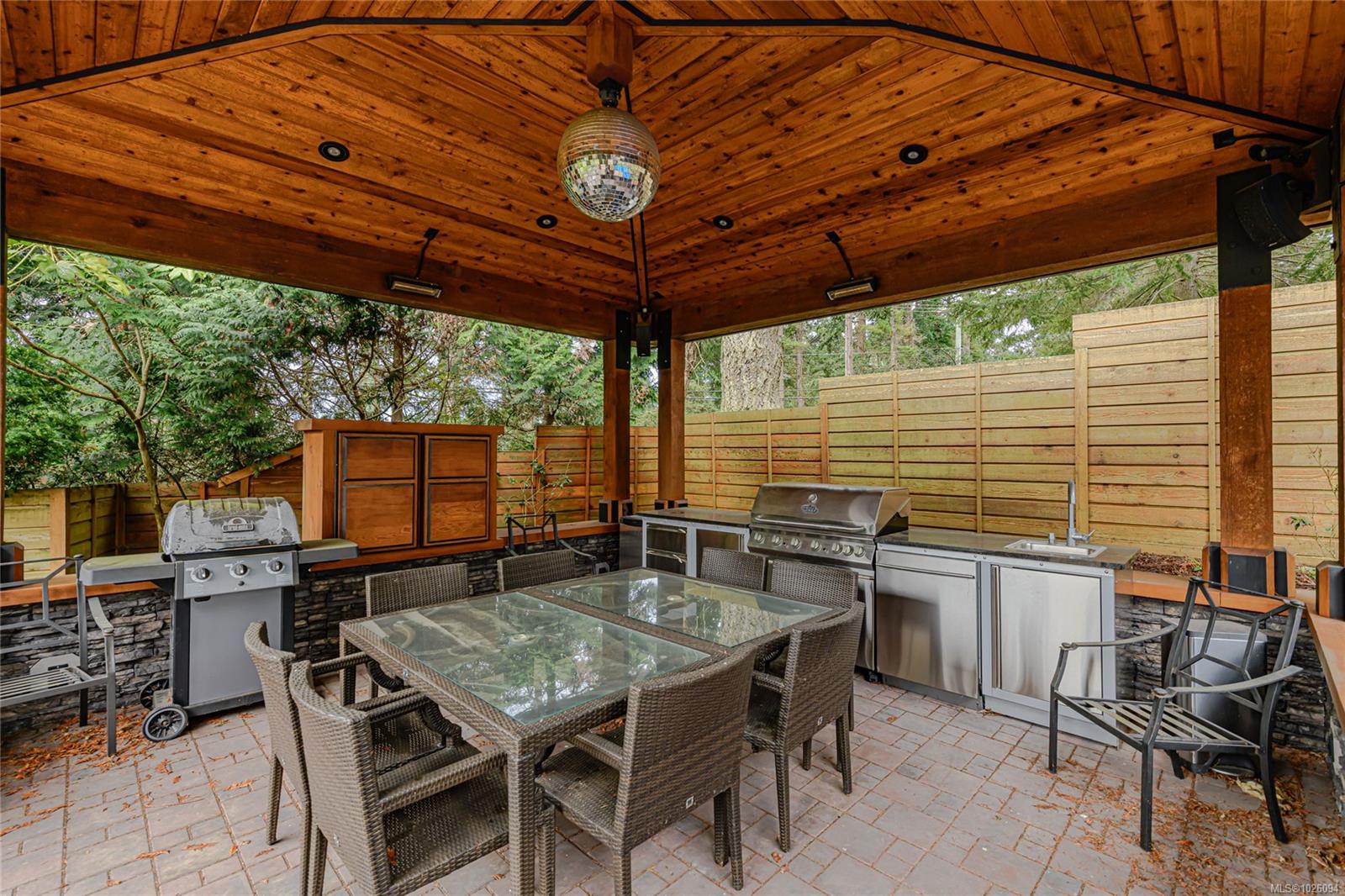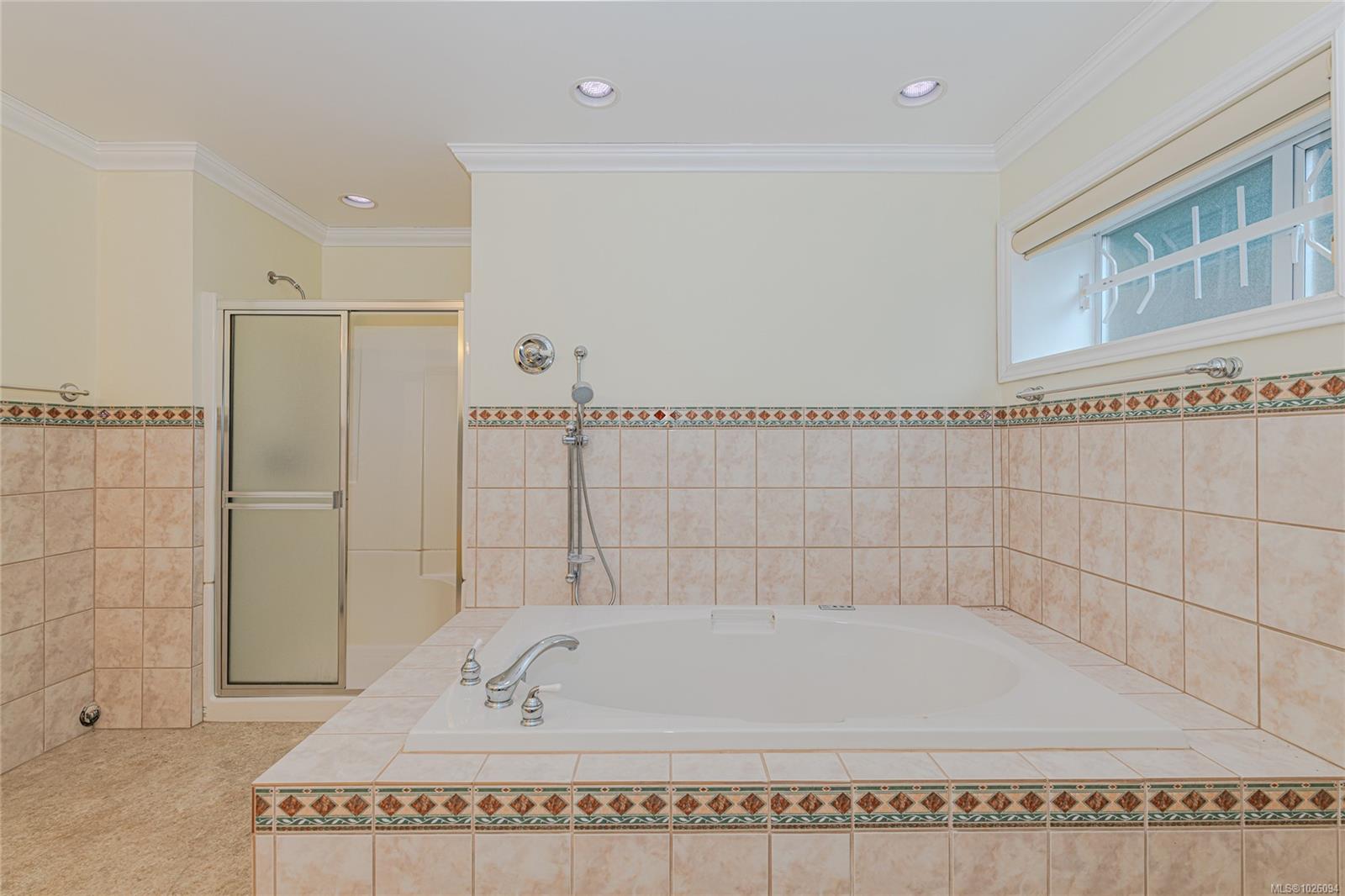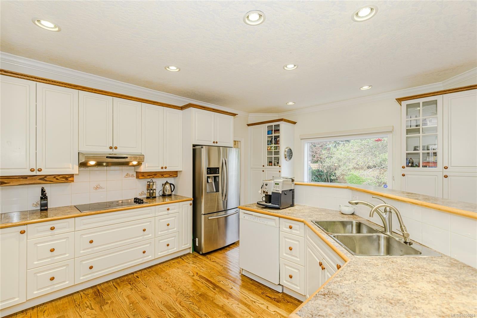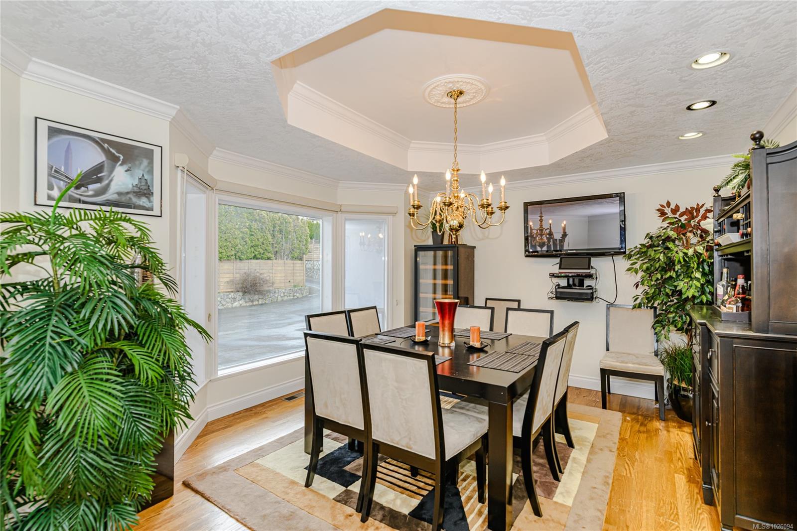 This special custom residence offers approximately 6,400 sq. ft. of living space, including a spacious 3–4 bedroom suite on the lower level, and is set on a very private, secluded half-acre in the heart of Gordon Head. Just moments from Arbutus Cove, the home enjoys distant ocean views from principal living areas overlooking beautifully landscaped gardens with a koi pond and custom gazebo—perfect for entertaining and summer BBQs. From the moment you enter, the scale and drama of the floor plan are evident. Highlights include 14-ft ceilings, floor-to-ceiling windows, skylights, hardwood floors, French doors, and an impressive grand living room and great room designed for both family living and entertaining. A private, secure setting close to UVic, top schools, parks, and beaches.