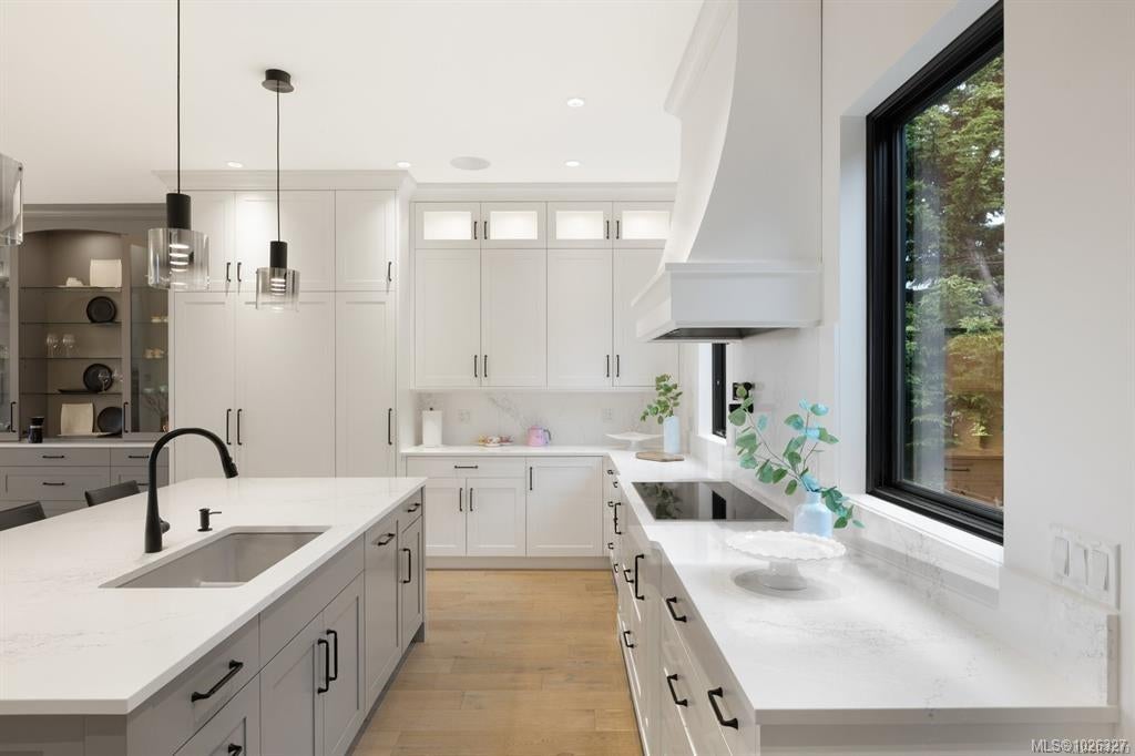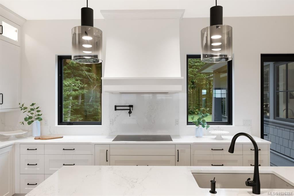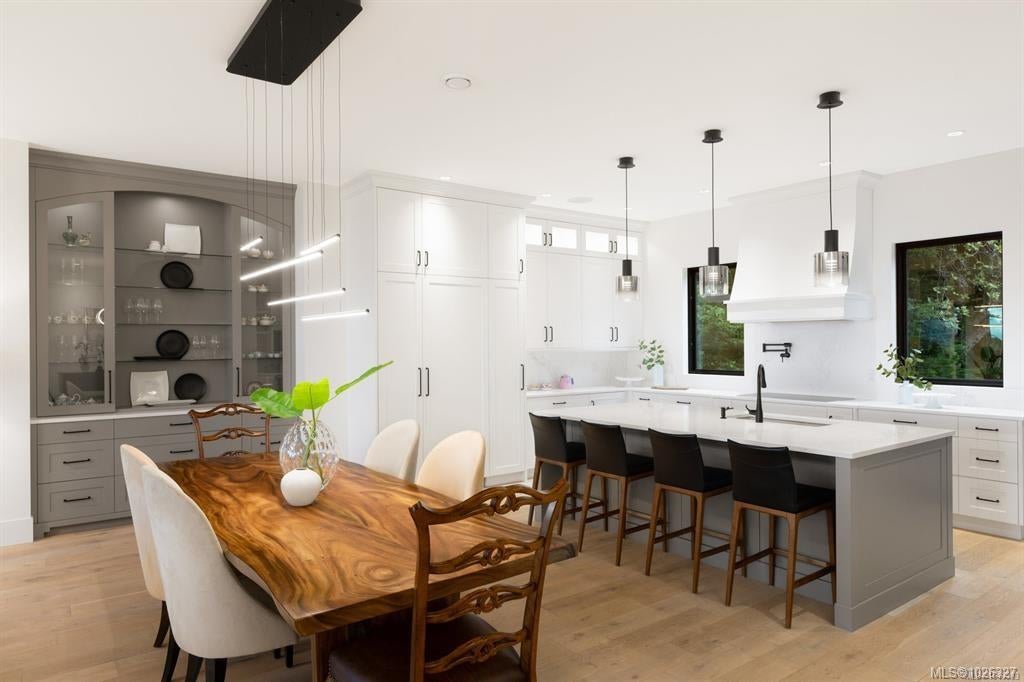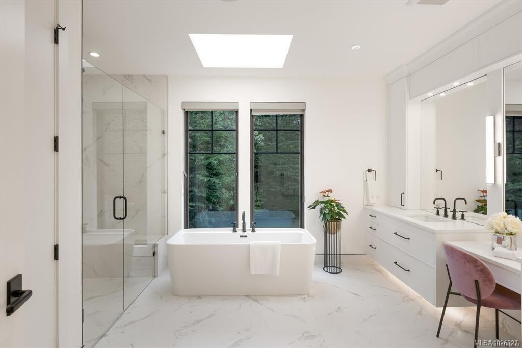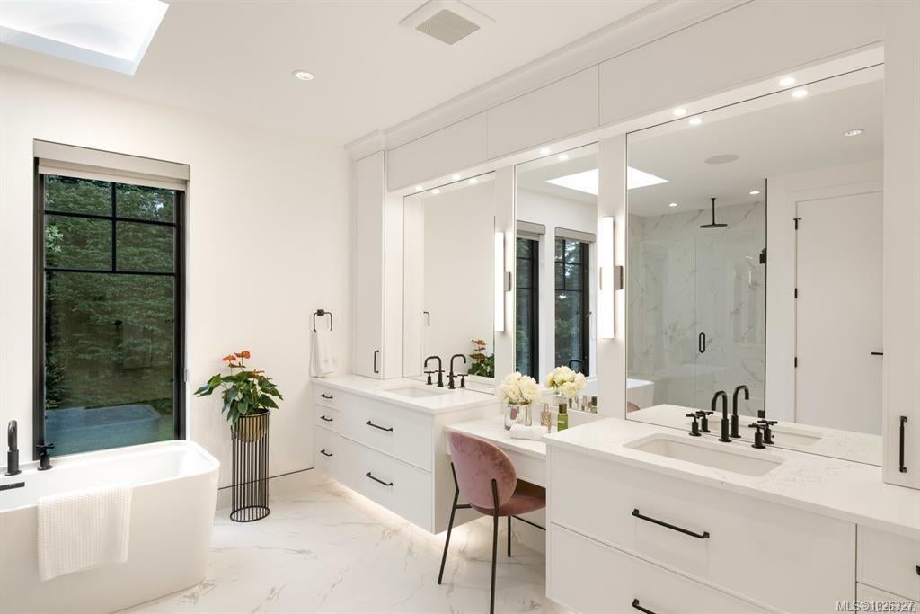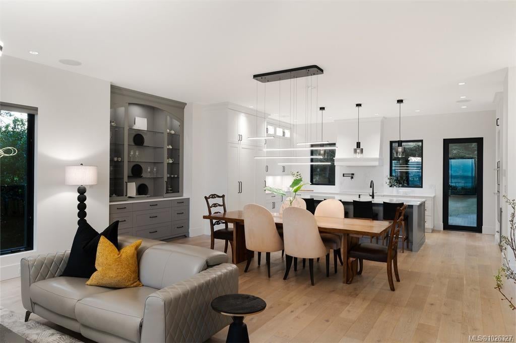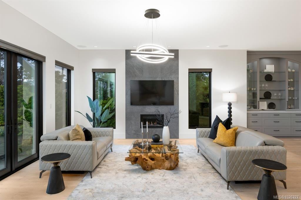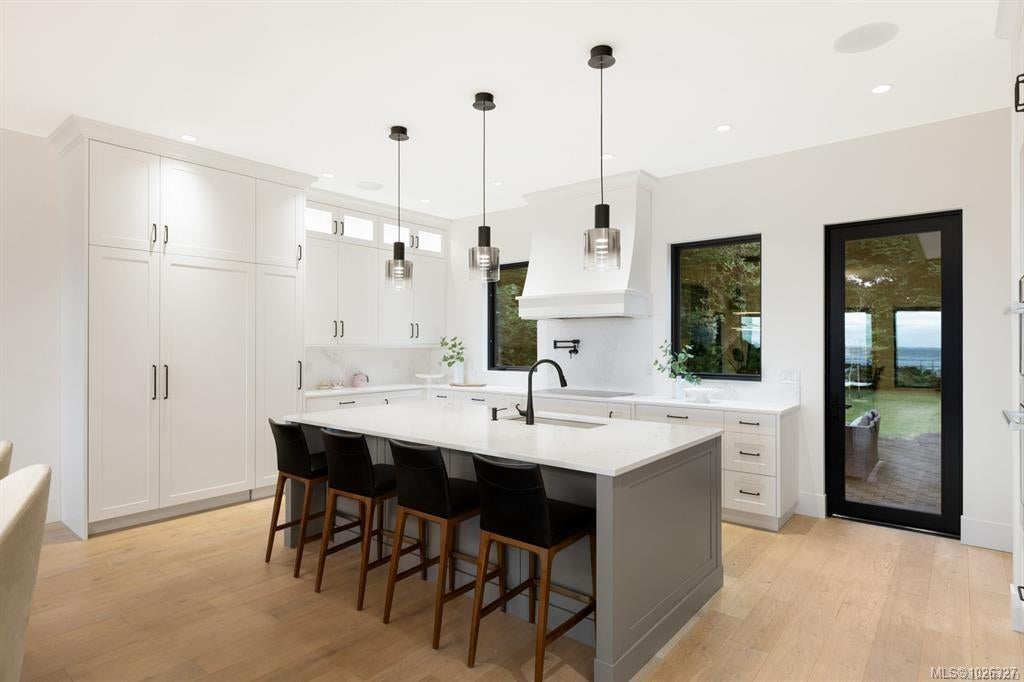 Experience the unobstructed waterfront views from this custom-designed Seaside Smart Home, crafted by award-winning Zebra Design and built to perfection by a top-tier builder. Situated on a large private lot in one of Victoria’s most prestigious neighborhoods, this modern minimalist residence blends natural beauty with intelligent design. Step into the expansive open-concept main floor, where a stunning chef’s kitchen features a massive central island, premium Miele appliances, and a full spice kitchen with Fisher & Paykel fittings and extensive custom cabinetry—ideal for everyday living and entertaining alike. A warm fireplace anchors the sophisticated living room, while a flexible multipurpose room awaits your vision: media lounge, gym, office, or art studio—the possibilities are endless. A striking floating staircase leads you to the upper level, where four spacious bedrooms—each with its own luxurious En-suite—offer comfort and privacy. The laundry room is conveniently located upstairs too. The primary and secondary master suites boast breathtaking views of the ocean and the snow-capped Olympic Mountains, a welcoming start to your day. Outdoors, enjoy a seaside front yard reminiscent of a living coastal painting, and a serene backyard sanctuary perfect for relaxation and escape. This exceptional home offers the ideal balance of indoor-outdoor living. Located on prestigious Beach Drive, you are moments from the Oak Bay village with its shops and restaurants. Nearby are the Victoria Yacht Club, Cattle Point boat launch, oceanfront parks, private schools, golf courses, kayaking spots, the marina, and waterfront dining. This is more than a home — it's a lifestyle. Clean-lined architecture, seamless smart home features, and unmatched privacy combine to create your elegant, timeless dream home by the sea.